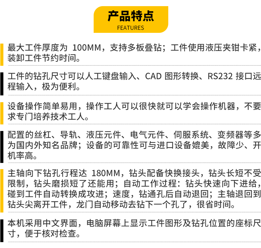 工劃線(xiàn)鉆孔鉆模鉆孔,應(yīng)用本數(shù)控鉆床可使鉆孔工作的全過(guò)程達(dá)到高精度、高效率的完全自動(dòng)化程度,為平板鉆孔加工首選設(shè)備。
